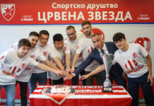 Рођенданску торту исекли су лауреати, а уследило је и заједничко фотографисање свих награђених спортиста и клубова СД Црвена звезда.