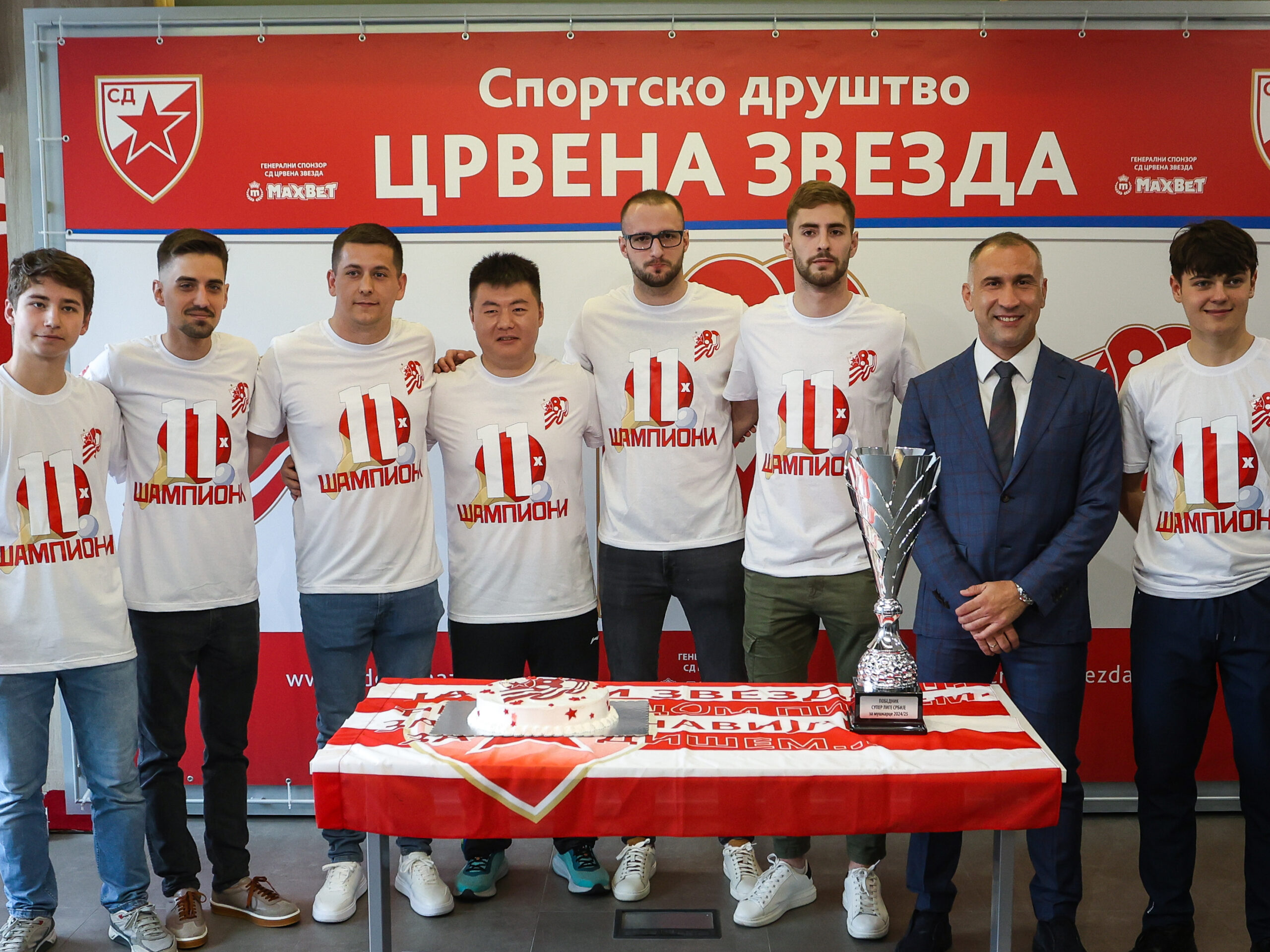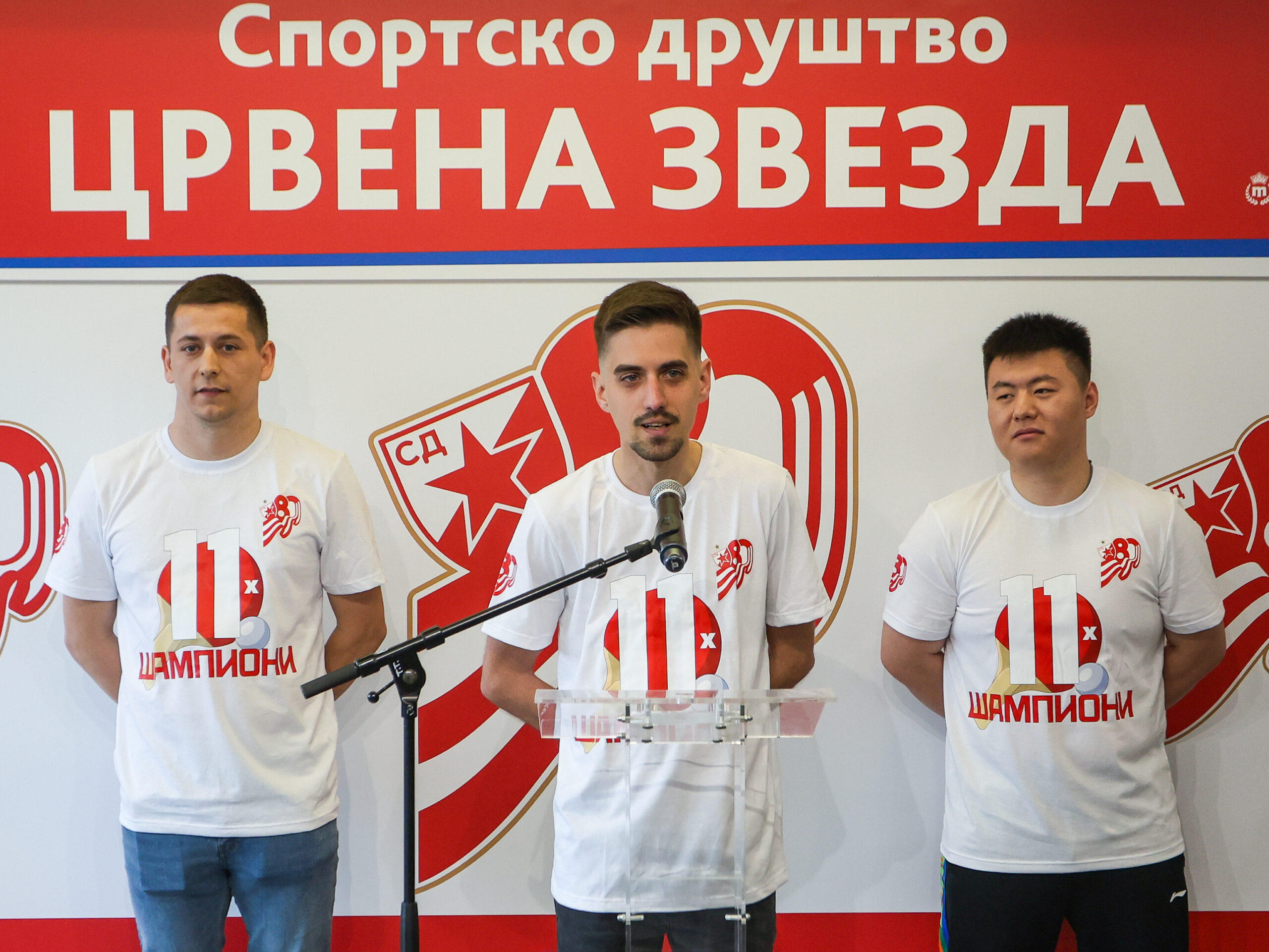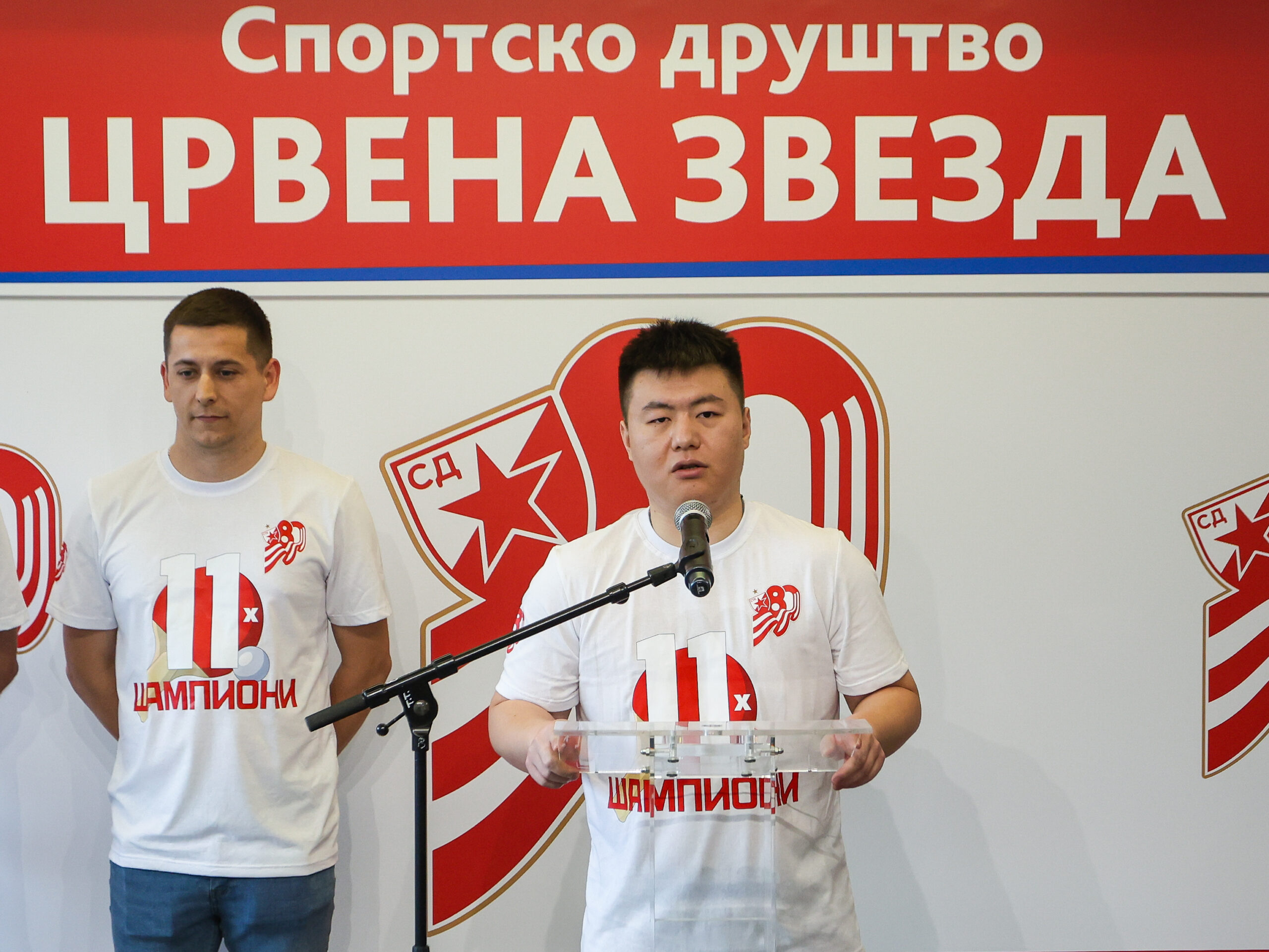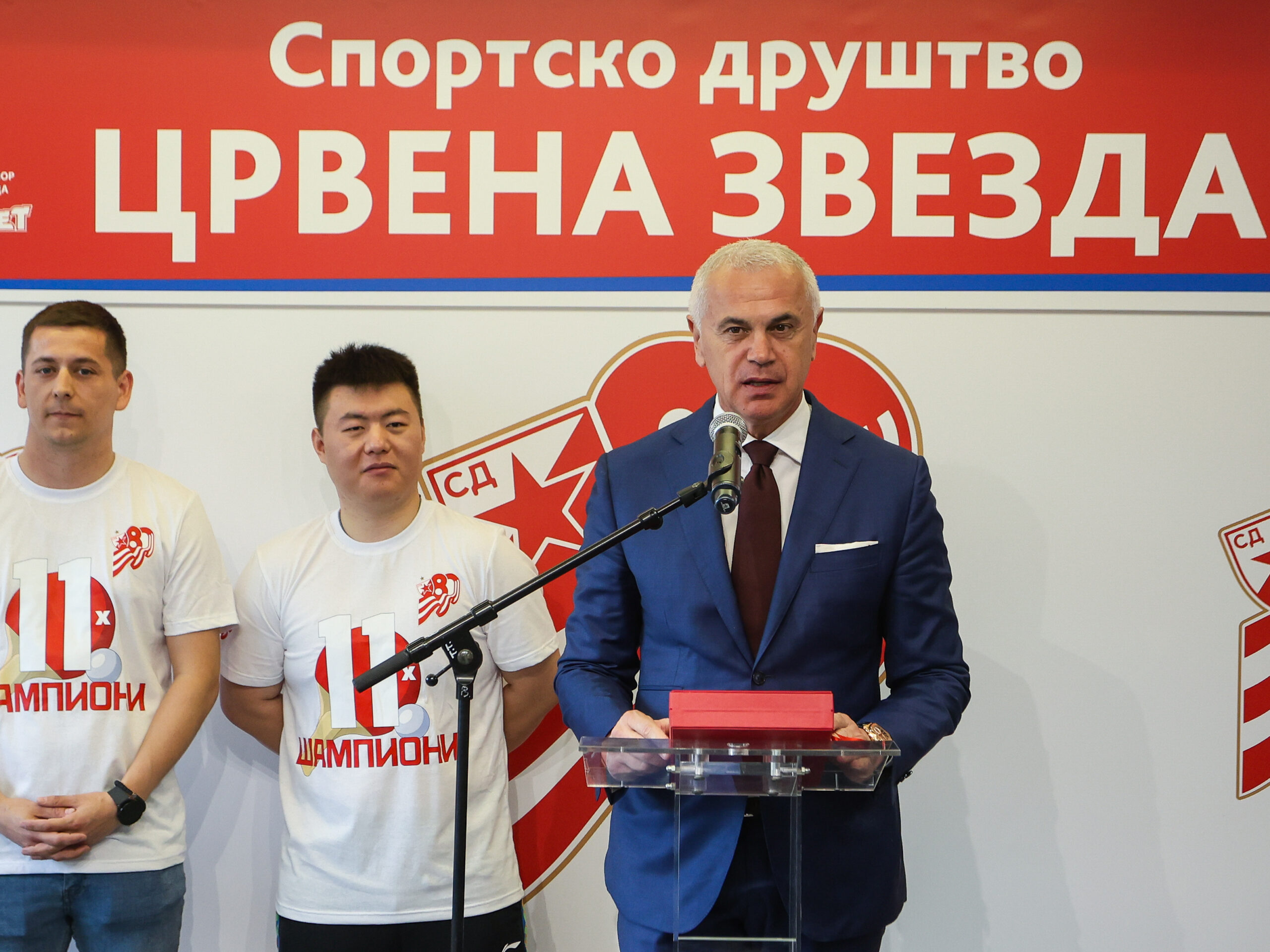 Представницима медија и присутним званицама обратили су се Иван Такач, Никола Стругаревић и Маи Бингхуи који су истакли да је сезона била изузетно тешка, али да се на крају све исплатило јер се трофеј намењен прваку Србије вратио на Маракану.