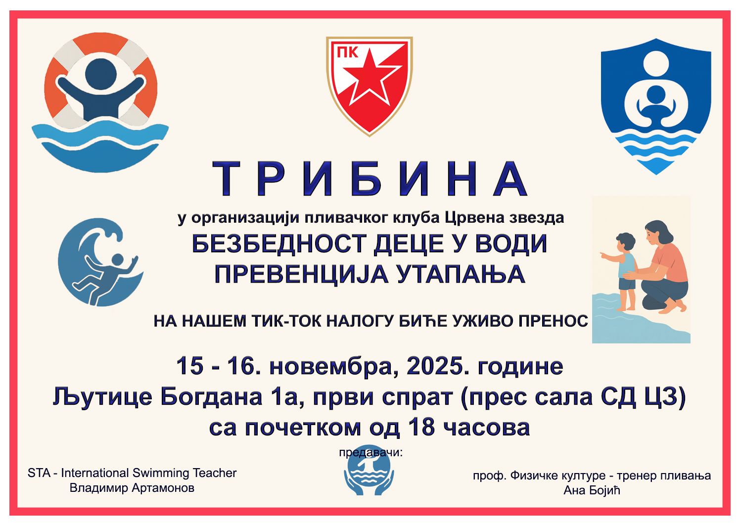 Утапање је један од водећих узрока смртности код деце, али сваки такав случај може бити спречен знањем, надзором и правилним понашањем у води. Кроз ову кампању, наш клуб ће током целе сезоне организовати активности, предавања и јавне програме намењене родитељима, васпитачима и деци, са једним циљем: да ни једно дете више не страда због недостатка пажње или знања.