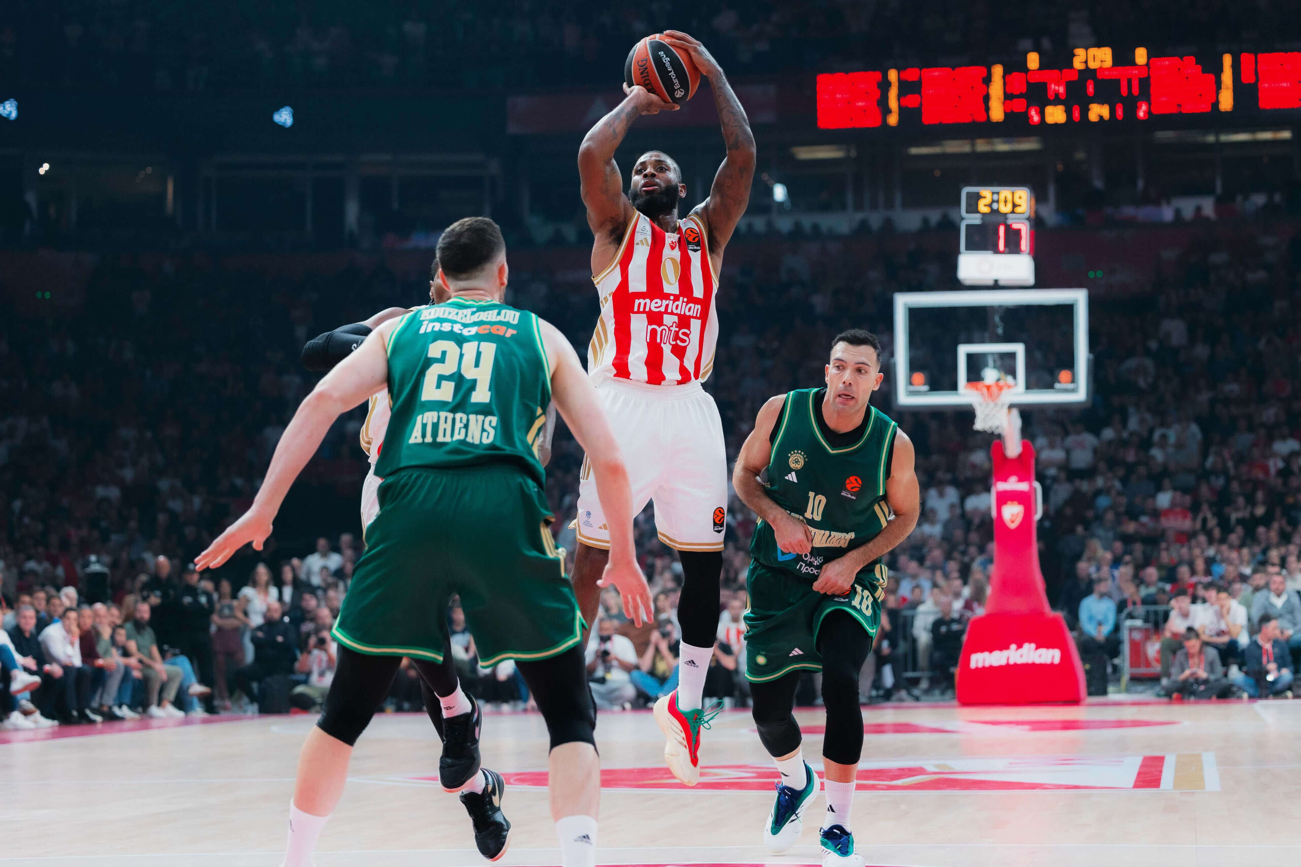 Магија не престаје! Црвена звезда Меридианбет је остварила велику победу у Арени, где је у деветом колу савладала Панатинаикос – 86:68 (20:12, 26:20, 21:8, 19:28). Црвено-бели су остварили седму узастопну победу у Евролиги, чиме су изједначили свој рекорд из 2017. године.