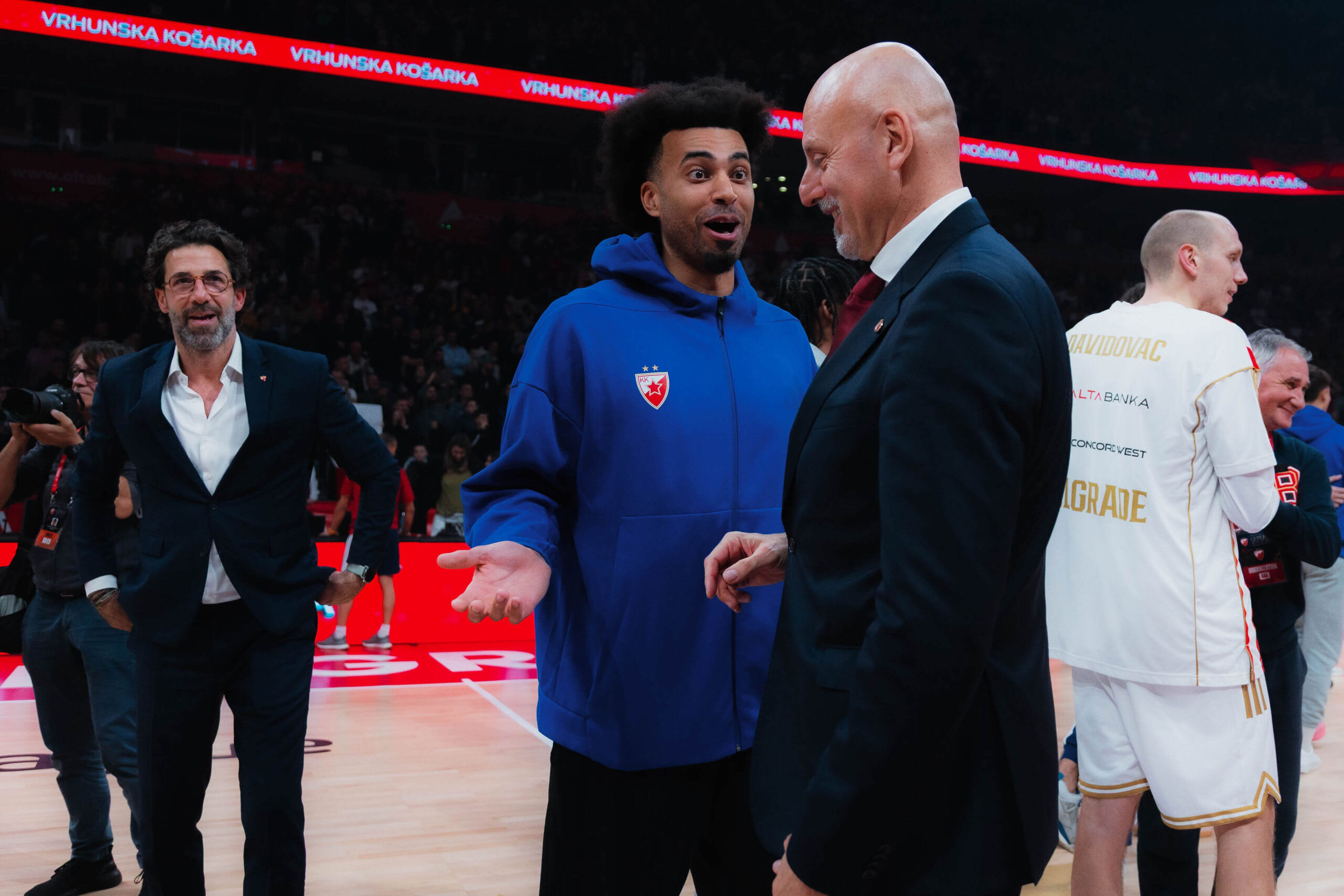 Никола Калиниц: – Најпунија Арена. Дупке пуна. Можда мало лакша утакмица, па онда за нијансу се није толико закувало да се дигне публика. Било је уживање играти. Стварно смо добро играли, они су оптерећени повредама, не знам чиме другим, али ми смо играли баш добро, наша игра, наш критеријум, физикалност… Контролисали смо скок и поред опуштања, одиграли смо веома добру утакмицу. Мислим да сви дају свој допринос, то дају сви играчи. Свако ко дође, даје све од себе. Батлер треба да се навикне још на европску кошарку, на притискање по целом терену, на искакања, на игру рукама, можда прави неке фаулове, који се у НБА не свирају, али ће све то доћи на своје.