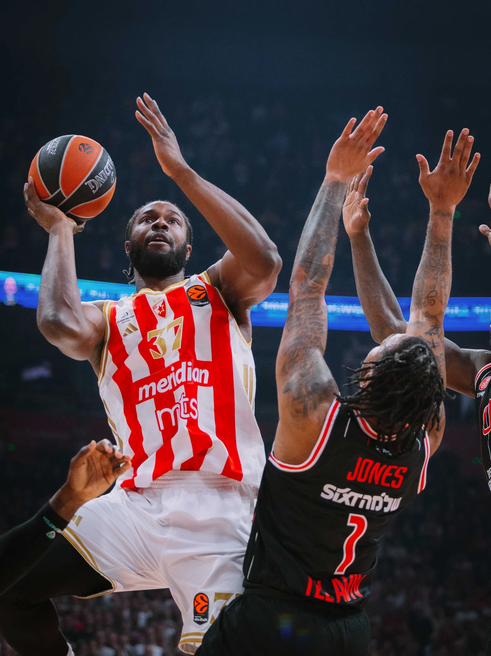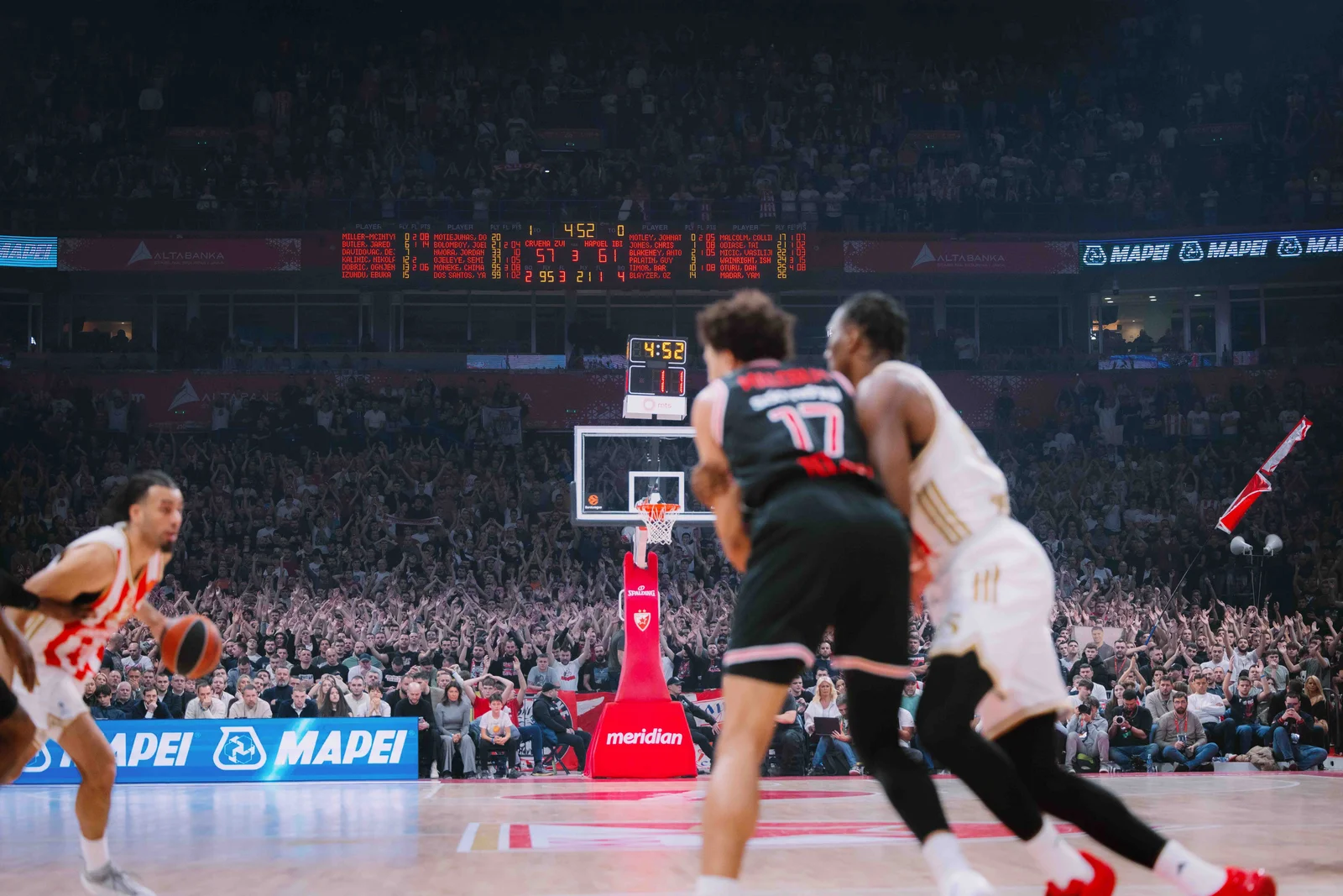 Ноћ шампионског карактера у Арени. Црвена звезда Меридианбет дошла је до пете узастопне победе у Евролиги, пошто је у 26. колу савладала Хапоел – 87:75 (25:21, 24:24, 13:24, 25:6).