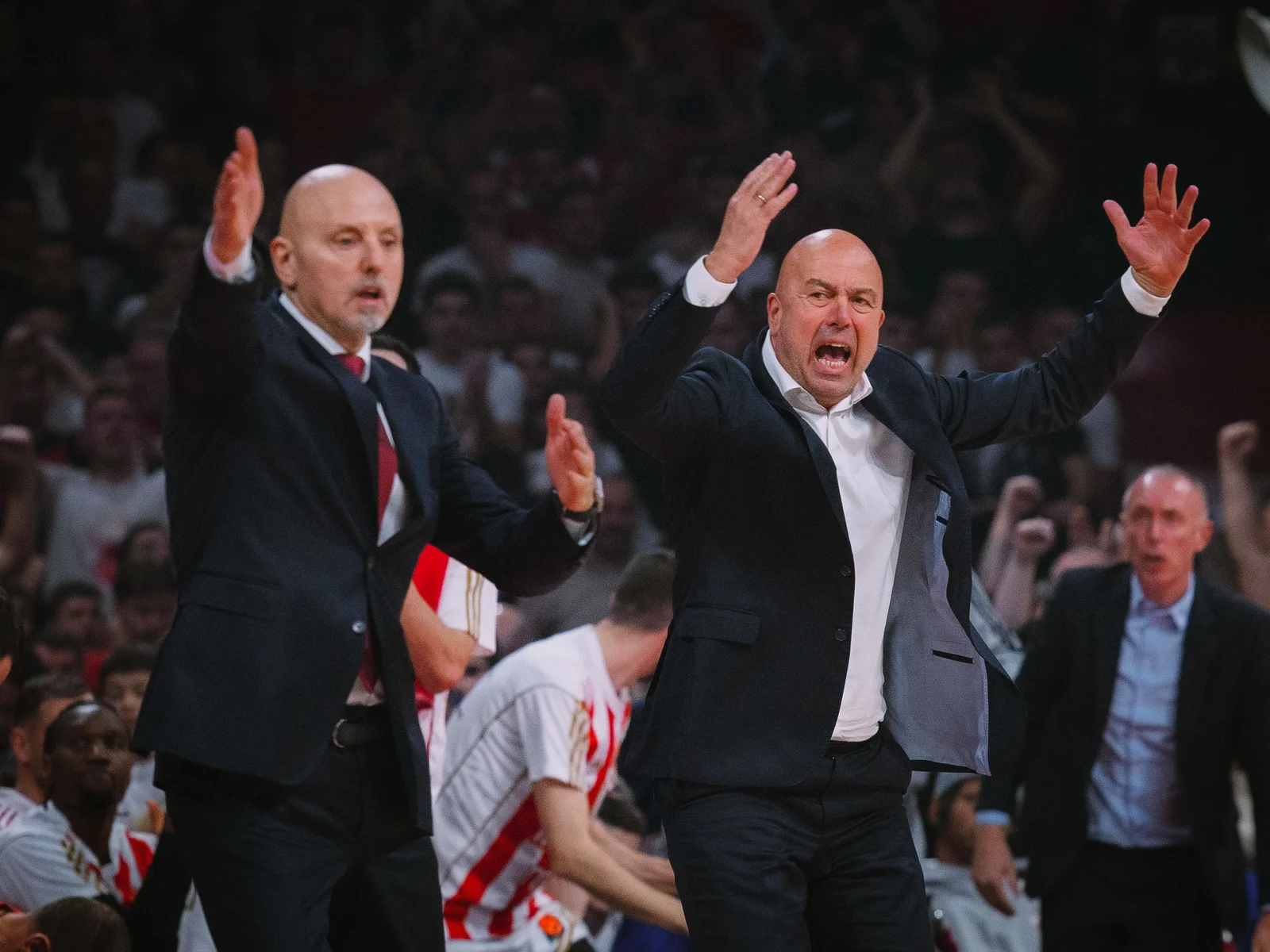 Тренер Саша Обрадовић: – Данас ми је било тотално посебна атмосфера. Чинило ми се кад је почела последња четвртина, да играмо до прекосутра, не бисмо изгубили. Наши навијачи су били на невероватном нивоу. То је био први велики фактор што смо нашли енергију да играмо на тај начин. Ово је био дефинитивно шести играч. Само овако, иако не иде баш најбоље, можемо да нађемо енергију. Момцима то много значи. Била је одлична утакмица, обе екипе су играле на високом нивоу. Хапоел је погађао можда и неке тешке шутеве, а ми неке једноставне промашивали. Захваљујући нашем изванредном скоку, имали смо контролу утакмице. Сваки играч који је ушао на терен је дао јак допринос. Јаго је дао посебну енергију, серија је кренула баш због тога. Задовољан сам победом и већом разликом у односу на прву утакмицу. Ово може да нам да стимуланс – рекао је Обрадовић.