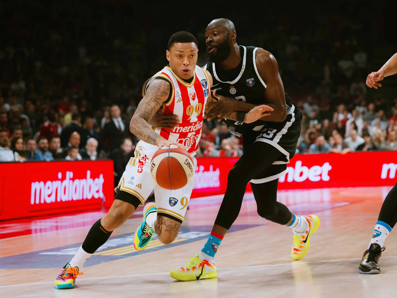 Кошаркаши Црвене звезде Меридианбет савладали су вечитог ривала резултатом 100:96 у дербију АБА лига и тако наставили импресиван низ непобедивости на домаћем терену против Партизана – 100:96 (24:21, 20:25, 23:23, 27:27).